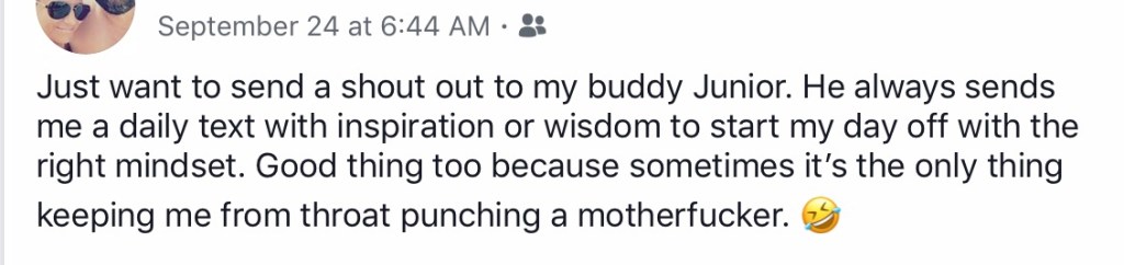 We also need to remember that no matter how smart we are or how much we think we know, we still get it wrong sometimes. The picture you see featured for this is really people showing up for each other after surviving a terrible ordeal, disguised as friends having a beer. All my love to y’all.